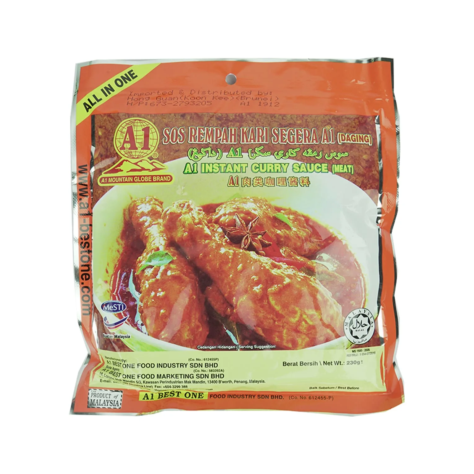 Be the first to review “A1 Sos Rempah Kari Segera A1 (Daging) A1 Instant Curry Sauce (Meat) 230g” Cancel reply