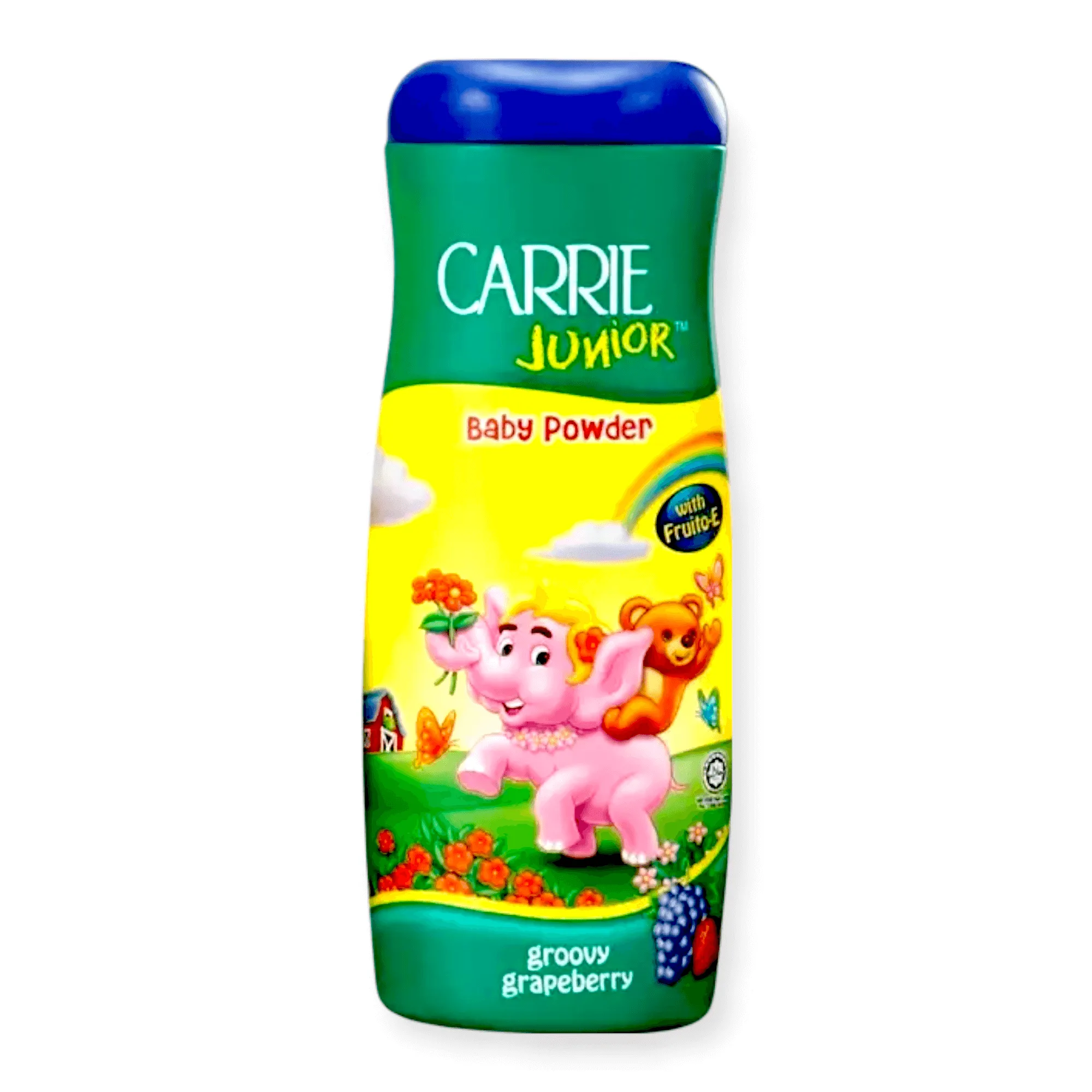 Carrie Juniorâ„¢ Baby Powder Bedak Bayi Carrie Junior To keep baby’s delicate skin fresh and comfortable, CARRIE JUNIOR Baby Powder is enhanced with Fruito-E. The natural combination of fruit extracts, Fruito-E is rich vitamins and nutrients to help soothe, nourish and protect baby’s skin. Use every day to keep baby’s skin dry, smooth and healthy.