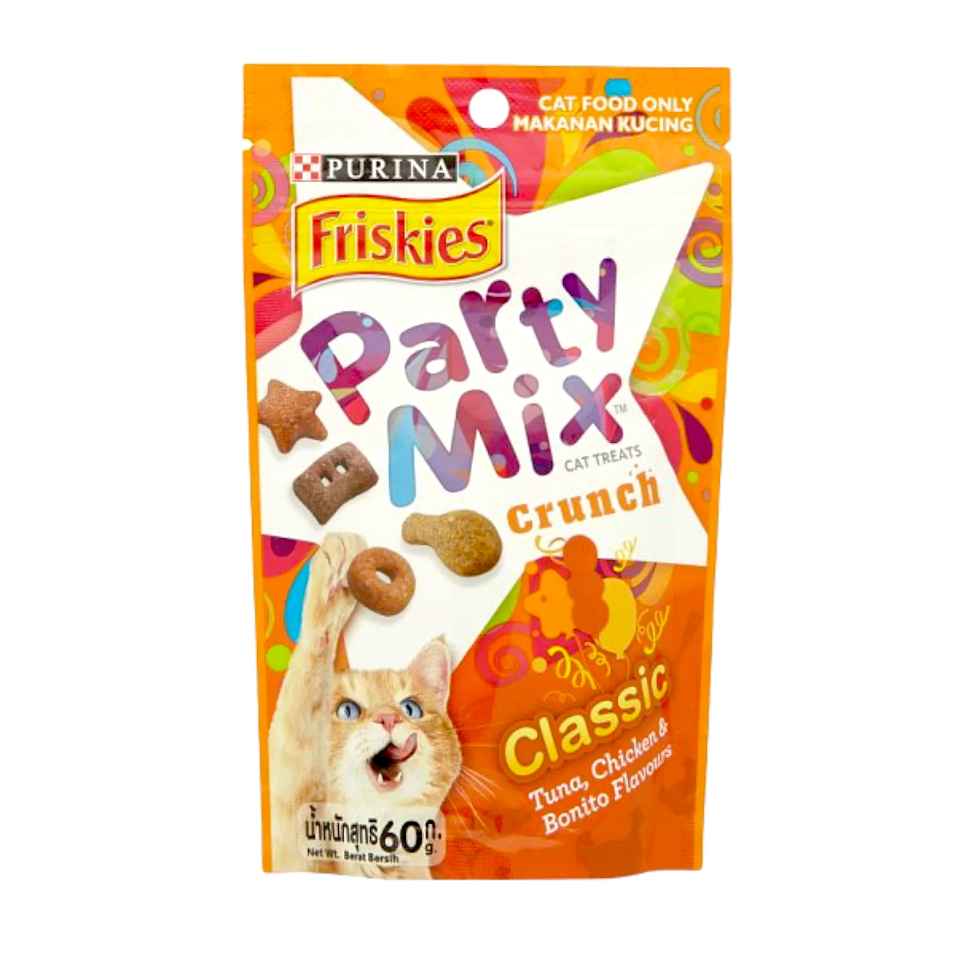 Purina Friskies Party Mix Cat Treats Crunch Classic Tuna,Chicken & Bonito Flavours 60g