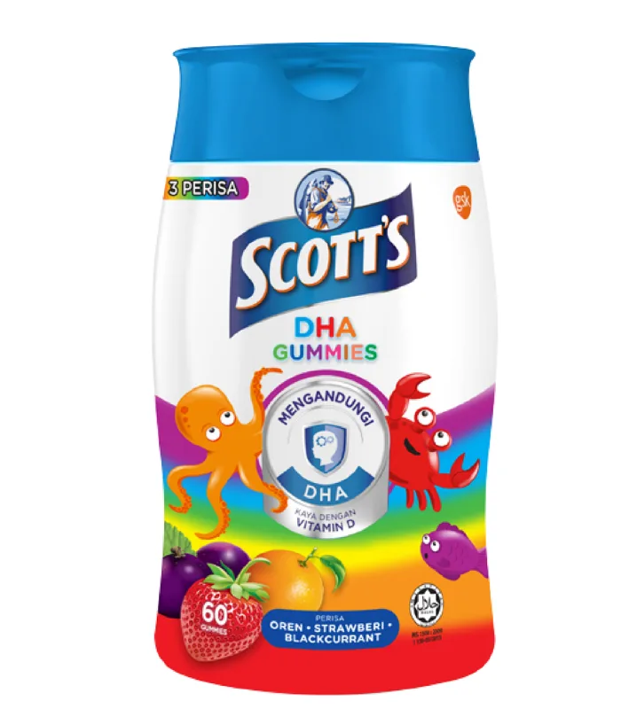 In 3 great flavors Blackcurrant, Orange & Strawberry Contains DHA and Vitamin D DHA helps support normal brain development DHA supports the maintenance of healthy vision Vitamin D supports immunity Vitamin D supports healthy growth and bone development
