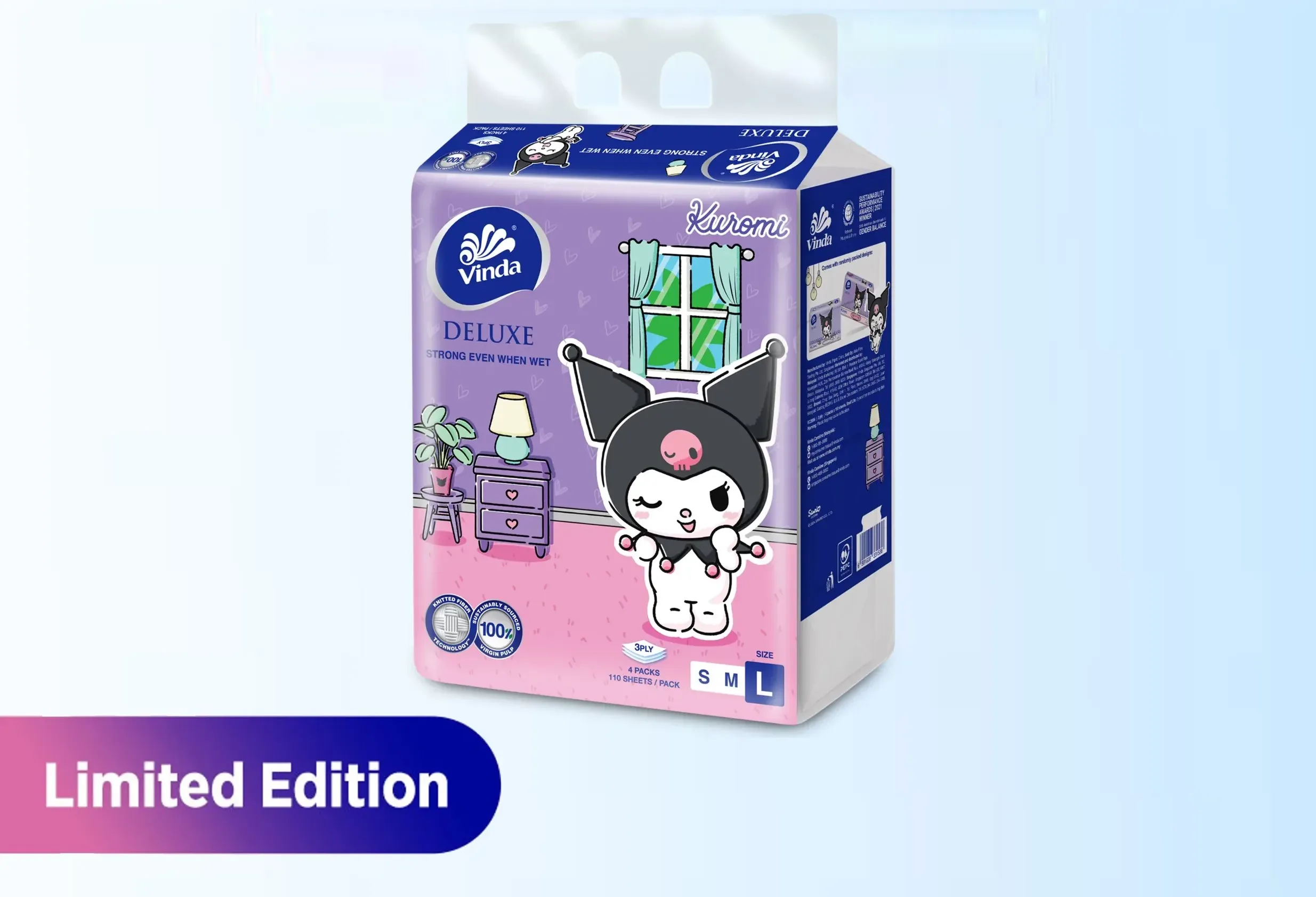 Vinda Deluxe Facial Tissue Large 3ply Kuromi Limited Edition – [4x110s]